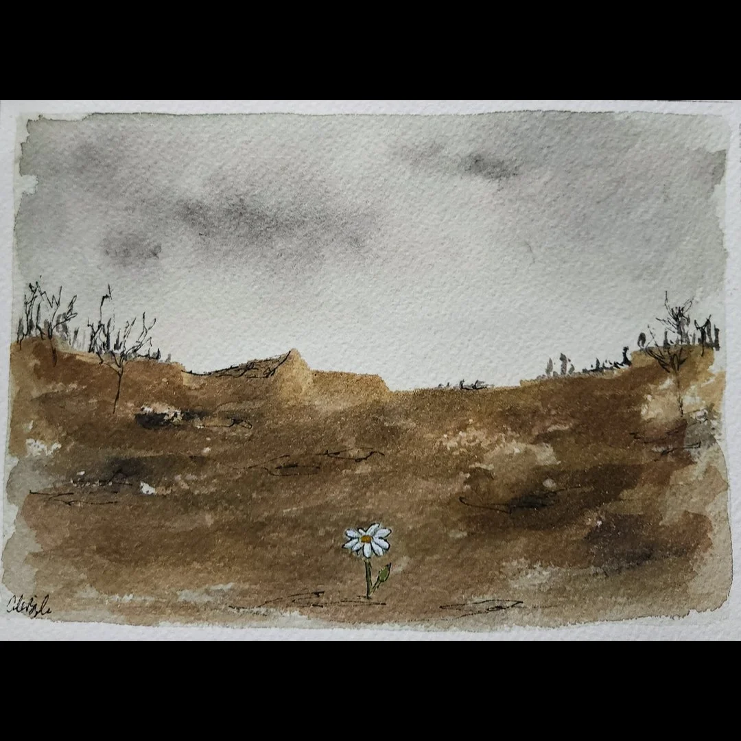 “The Last Night on Earth” is a 5x7” painting created during some politically and environmentally worrying times where my hands needed to keep busy to keep sane. It was painted with watercolor and has some additional pigment pen and acrylic pen details.